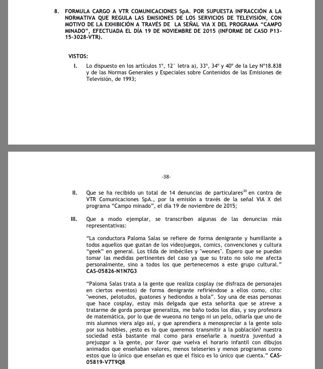 >Paloma Salas trata a la gente que realiza cosplay de forma denigrante refiriéndose a ellos como, cito: "weones pelotudos, guatones y hediondos a bola"